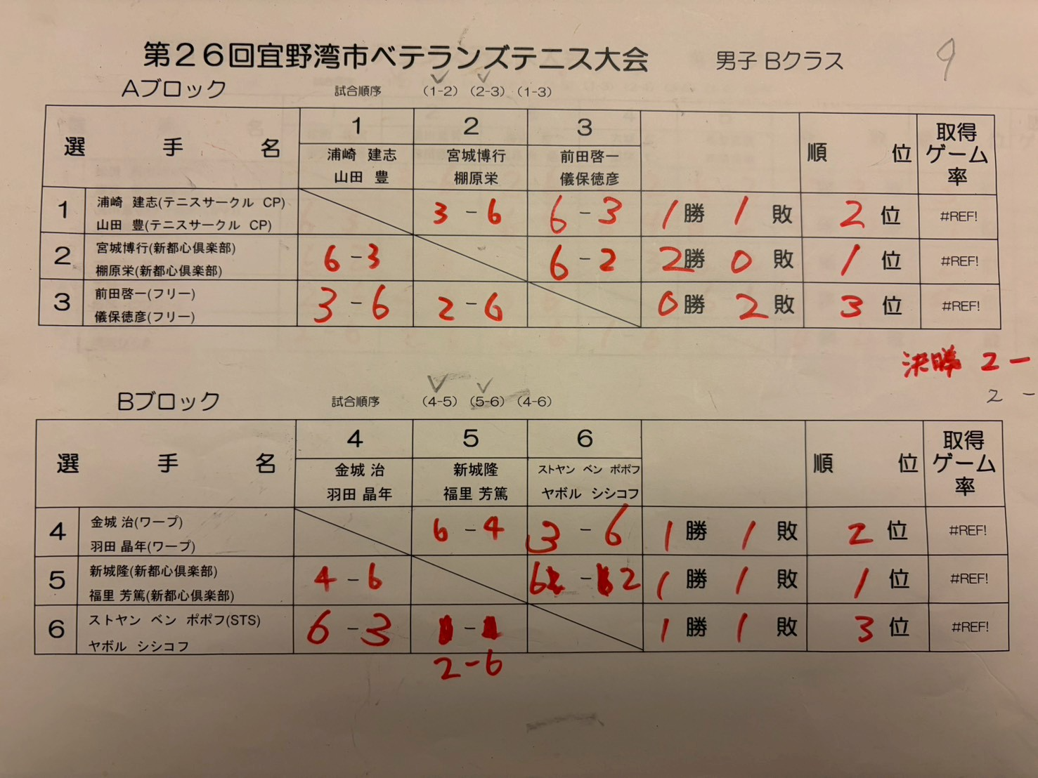 Home大会要項 結果: 男子第26回ベテランズテニス大会 ginowan-tennis 2026年2月23日 大会要項 コメントはまだありません 男子A優勝湧川重智、藤田勝大 準優勝當山善一、高江洲隆太 男子B優勝福里芳篤、新城隆 準優勝宮城博行、棚原栄 男子C優勝伊波幸広、宇津野達巳 準優勝比嘉義行、平良博紀 Tweet Pin It